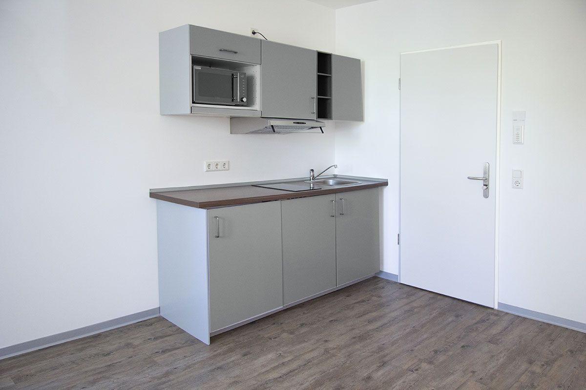 Beim Umbau des Gebäudes Haus 1 im Campus Energy zu einem modernen Appartementhaus haben wir Wert auf Nachhaltigkeit und Design gelegt. Renoviert nach Niedrigenergiestandard ist Haus 1 mit einer Photovoltaik-Anlage ausgestattet und verfügt über Solartherme. In diesem Haus findet Ihr schöne Wohnräume mit integrierten modernen grauen Küchenzeilen, PVC-freien Vinyl-Böden, schicken und praktischen Bäder mit Tageslichtfenstern. Alle Appartements im Erdgeschoss haben einen Terrasse – aber auch in den anderen Etagen schaut Ihr ins Grüne.